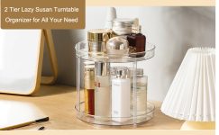Skycase Gewürzregal,Gewürzhalter Drehteller,Gewürzorganiser 2 Etagen,Drehbares Küchenregal,Küchen Organizer,Drehbar Küchenregal Gewürzständer aus Kunststoff für Gewürze Öl Gewürzflaschen,durchsichtig