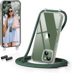 GOODVISH Handykette kompatibel mit Apple iPhone 13-6,1″ Display | Necklace Hülle mit Band Handyhülle für zum Umhängen | Transparent Case mit Schnur | Kameraschutz und Bildschirmschutz | Dunkelgrün