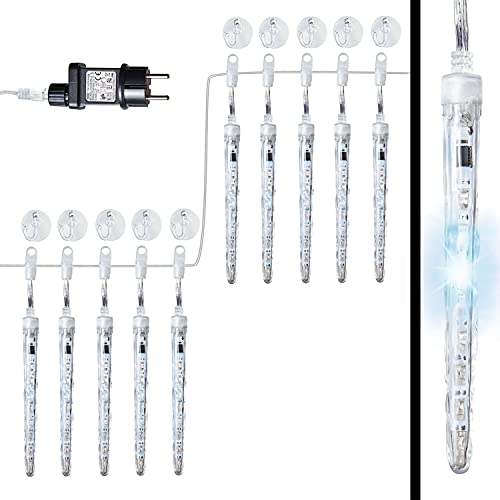 AMARE Eiszapfenlichterkette mit 80 LED (10 Eiszapfen à 8 LED) kaltweiß mit Schneefalleffekt Länge 3,6 m (zzgl. 10 m Zuleitung),...