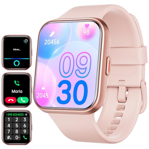 FMK Smartwatch für Damen mit Anrufen, intelligente Uhr Android iOS Erinnerung Nachrichten Fitness Tracker 1,7 Zoll HD Touchscreen IP68 Wasserdicht...