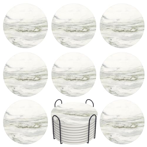 ZEHIQ Untersetzer Gläser, Marmor Glas Untersetzer-Set 8er, Absorbierender Untersetzer mit Korkboden und Halter, Getränke-Untersetzer für Bars, Cafés, Haus, Party, Büro