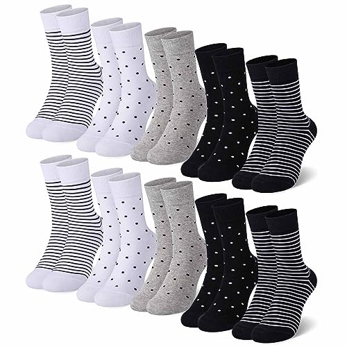 Falechay 10 Paar Socken Damen 39-42 35-38 Damensocken Mehrfarbig Mit Streifen Punkte Socken Baumwollsocken Sportsocken Schwarz,39-42