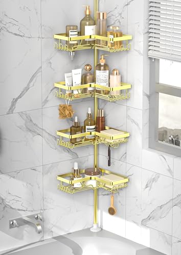 Kegii Teleskop Duschregal - Teleskopregal Bad Gold Duschablage Ohne Bohren Edelstahl Duschkorb Ecke Teleskopregal Dusche Eckregal Badezimmer