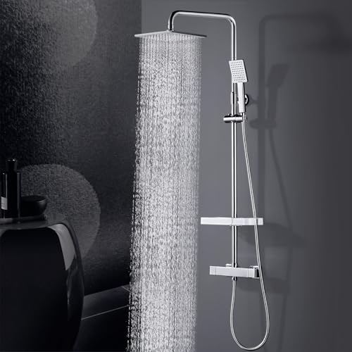 ARCORA Duschsystem mit Thermostat, 304 Edelstahl Regendusche Duscharmaturenset Badewannenarmatur Thermostat aus Kupfer für Badezimmer (Duschsystem mit Thermostatventil und Ablagefach)., 11.99 €