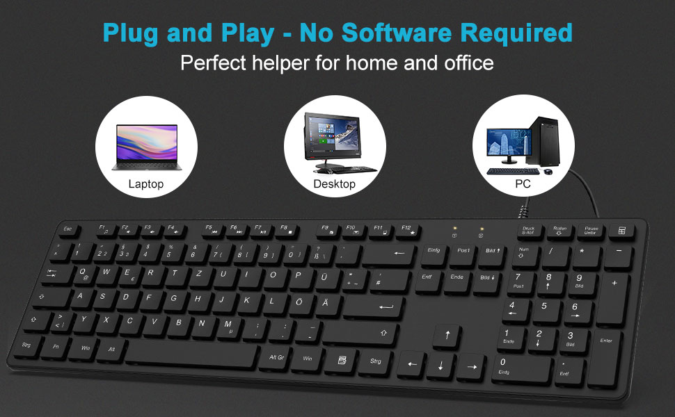 Kabelgebundene Tastatur USB, TedGem Computer Tastatur, USB Tastatur mit Kabel, Laptop Tastatur mit Kabel, PC Tastatur mit Kabel für WindowsXP/7/8/10/Vista